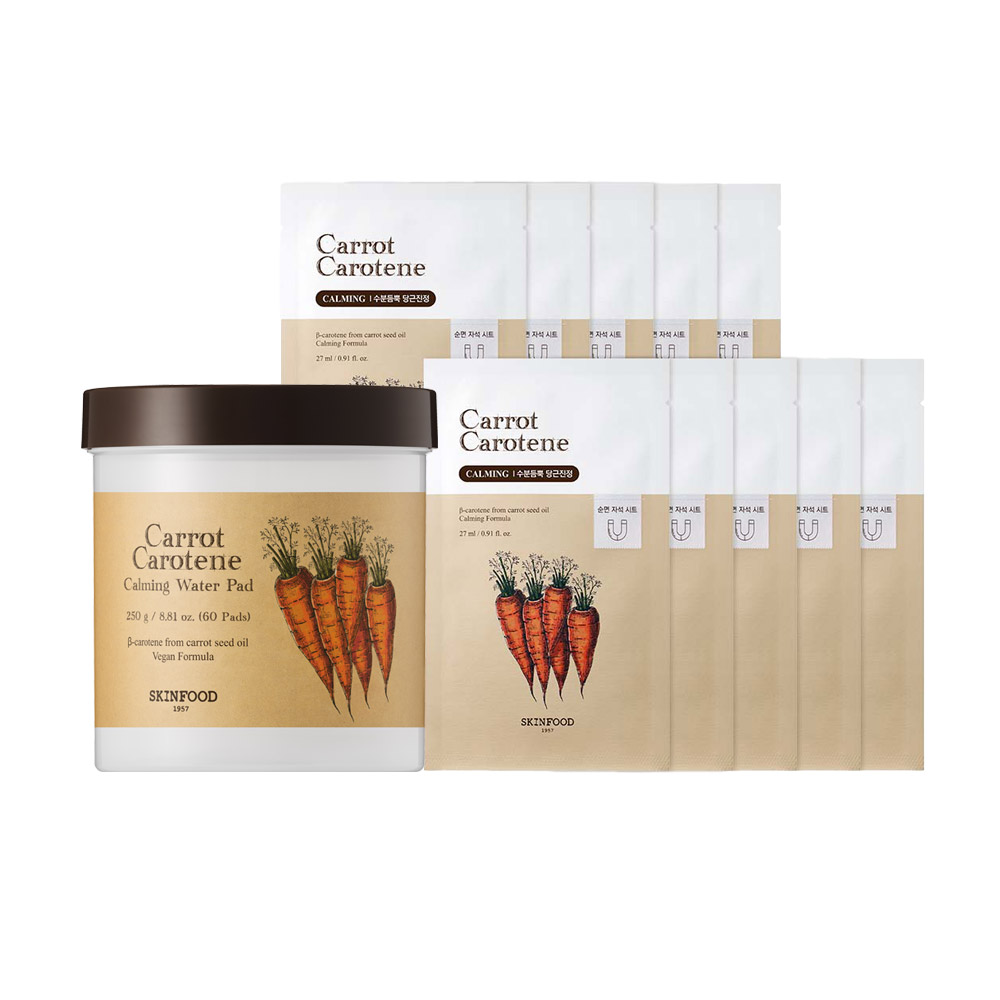 캐롯 카로틴 카밍 워터 패드 60매 캐롯 클렌징 폼 30ml 마스크 2매