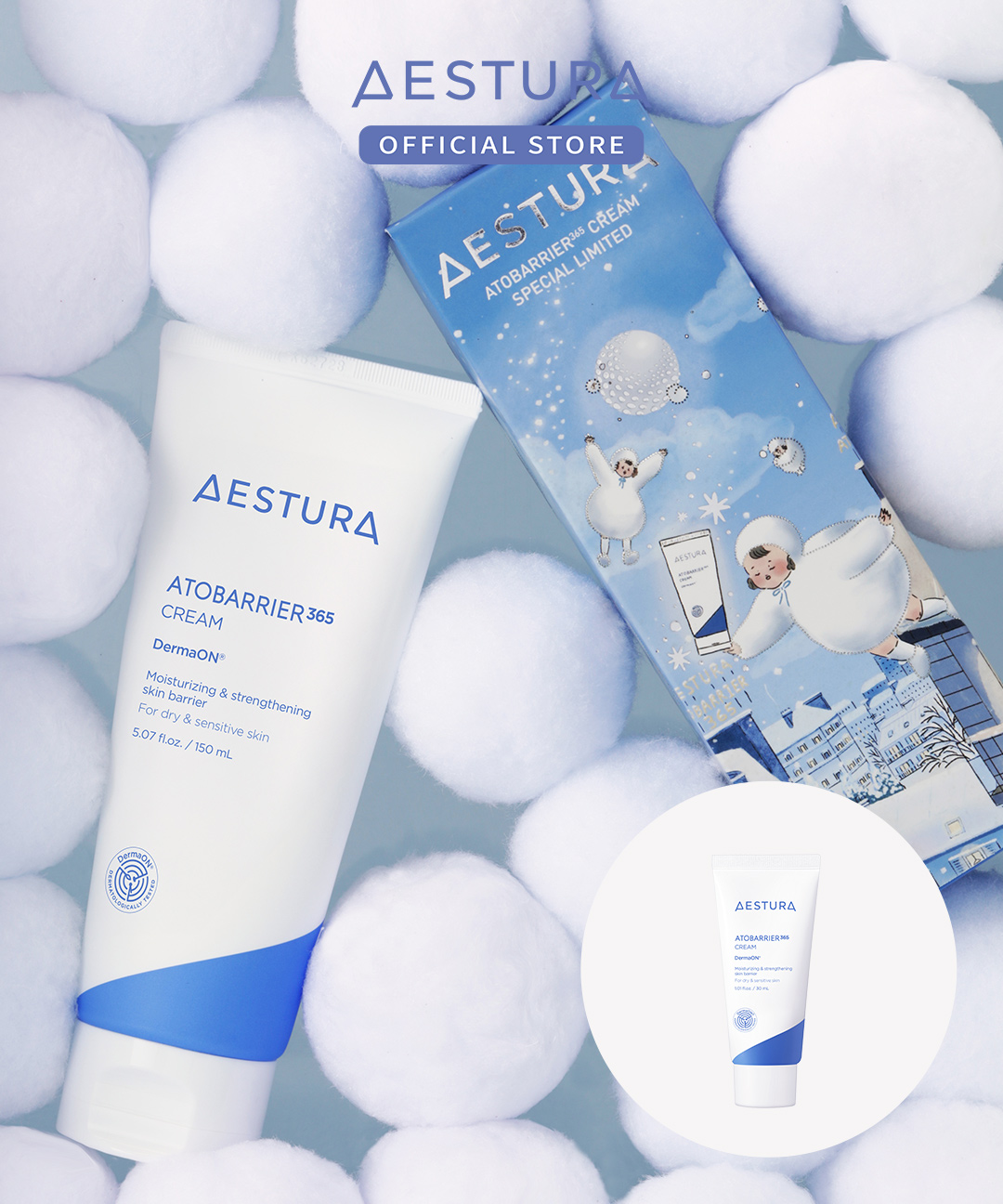 아토베리어365 하이드로 수딩크림 100ml 무기자차 선크림 10ml